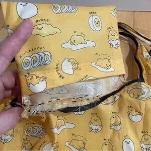 Sanrio gudetama large yellow packable tote. In fair condition, there was a tear where I see it back. Please see photo
