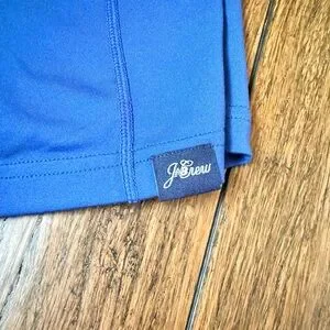 This running top is a collaboration between New Balance and J. Crew. It’s 83% Polyester and 17% Elastane. The sleeve has a hole (available in pictures) for thumbs but will keep hands snuggle while running in cooler temps. Size Small