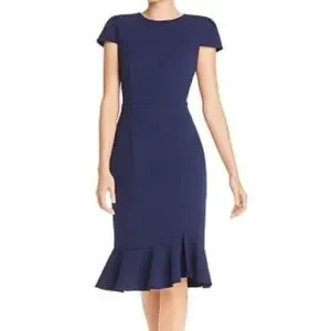 New Betsey Johnson Navy Stretch Ruffle Sheath Pencil Midi Dress Size 6 NWT