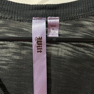 Button down the front cardigan, 100% cotton, size size large, very long in length with unfinished look on bottom edge see picture attached