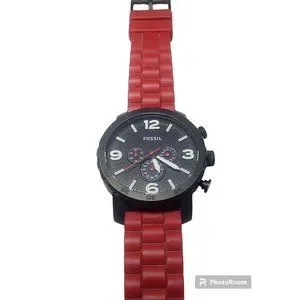 Fossil Nate JR1422 Chronograph Black Face White Accents and Red Band A7