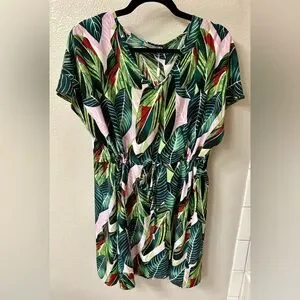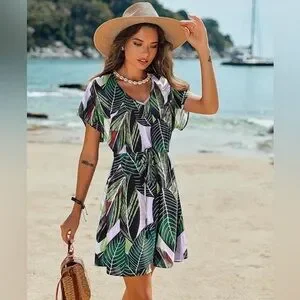 Casual Floral Swimsuit Coverup and Beach Dress with Flowy Adjustable Tie at Waist