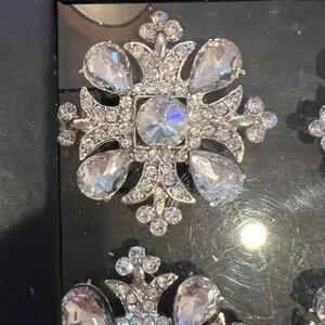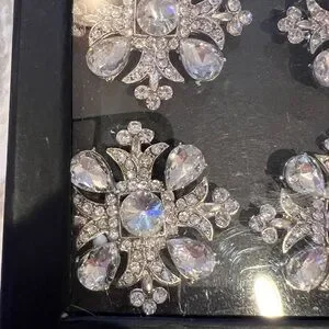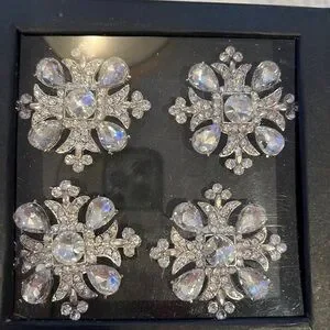 TAHARI HOME RHINESTONE NAPKIN RING SET flower snowflakeCrystal Silver Jeweled