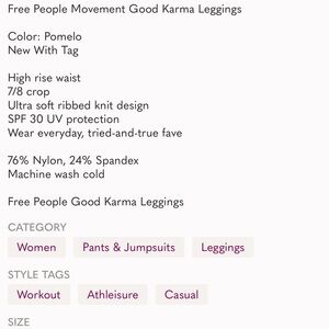 Free People! FP Movement Good Karma Leggings in Pomelo NWT!