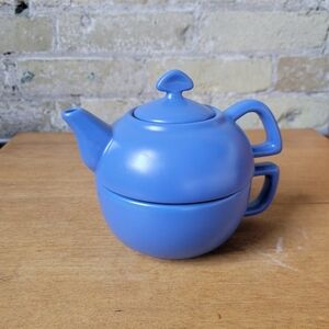 2003 Chantal 'Tea For One' Stacked Ceramic Teapot + Mug 13oz Blue