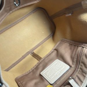 - Coach Iconic Coach Brown/Beige Leather Shopper Tote