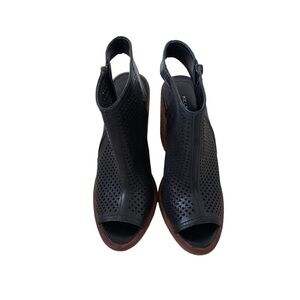 Kelsi Dagger Boho Black Leather Open Toe Perforated Ankle Bootie