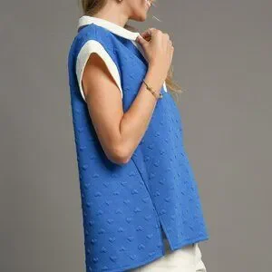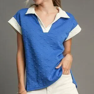 NEW Umgee Heart Knit Jacquard Top With Contrast Trim