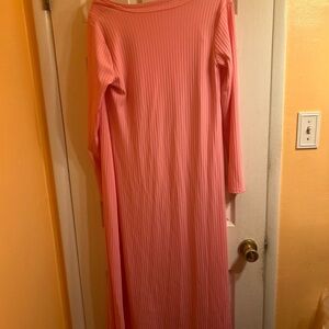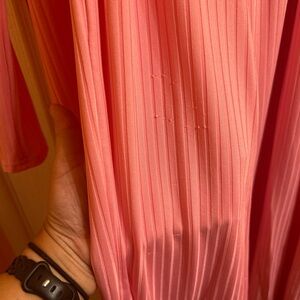 3 piece pantsuit. Pink Very comfortable, can be loungewear or can wear out and about. Soft stretchy material. There are a few snags - one on top and a few on the duster and pants
