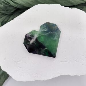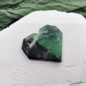 Feather Fluorite Faceted Heart Crystal Carving