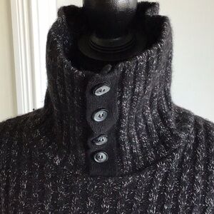 H&M black lambs wool blend button collar turtleneck long sleeve knit sweater M