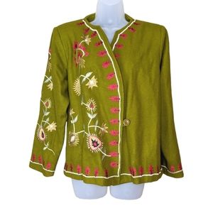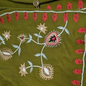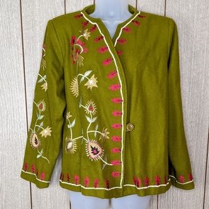 Vintage Wool Blend Embroidered Coat Large Terry K Floral Green Red