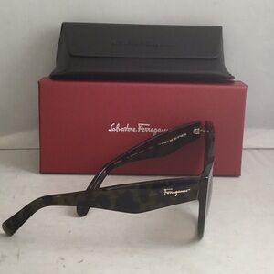 Brand new Salvatore Ferragamo Sunglasses Ladies , size 56/18/145 , color Havana green , made in Italy , comes with case and box.