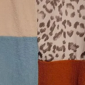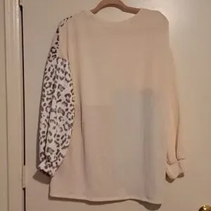 75% polyester and 25% spandex , nwot ribbed knit long sleeved blouse. size xl. I bought new and never wore. ptp unstretched is 25. oversized. length 30"