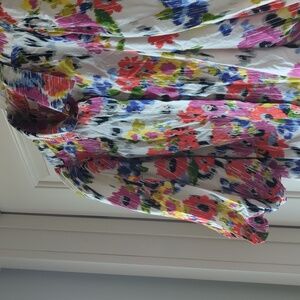 Blouse with puffy sleeves from Anthropologie. Maeve by Anthropologie. Size small. EUC. Floral watercolor design. Would look great under a vest or jumper or paired with your favorite high rise jeans! Easy to dress up or down depending on your mood.