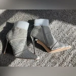 Brand new Steve Madden Primerra Booties, sz 9 new without box. All rhinestones are in tact none are missing. These booties are absolutely Gorgeous and I’m sad I have to sell them due to me not being able to fit them after my last pregnancy, my lost your gain. If purchased they will be wrapped to protect them from any damage and I will ship them in a random shoe box I have laying around.