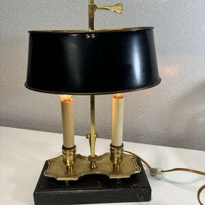Black Shade Bouillette Lamp 2 Candlestick Lights Gold Brass Tone