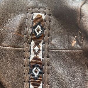 Vtg. Men's Leather Gallery Western Native Boho Lace-up Jacket Brown Beaded Rare