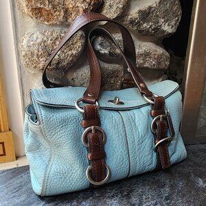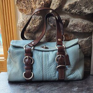 COACH D1082-F12334 Vintage Blue/Brown Chelsea Pebbled Leather Satchel Bag