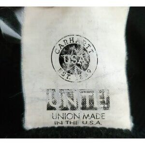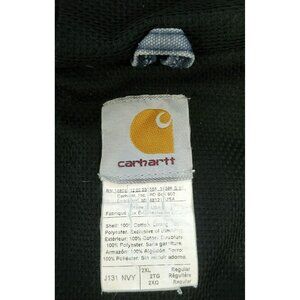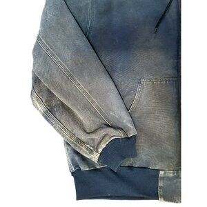 Used Condition, Distressed, Faded, Stains. Lots of Life left in this heavy duty, quality jacket. Washed but I did not try to get stains out. Smoke-Free. Jacket has Redi-Mix embroidered Logo.This vintage Carhartt jacket is a must-have for any outdoor work, mechanic, construction, or farm worker. The faded navy blue color and distressed look, stains give it a unique style, while the heavy weight and thermal insulation will keep you warm in the winter, fall, and spring. The jacket features a full zip closure, lined hood, and multiple pockets for storage. It also has a Redi-Mix logo and is union made in the USA. The size is 2XL. This bomber jacket is made of duck outer shell material and polyester lining material. Don't miss out on this one-of-a-kind piece!