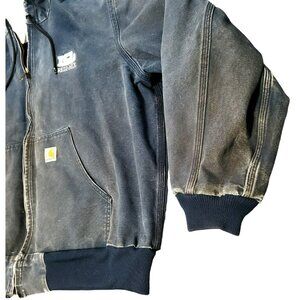 VTG Carhartt Duck Thermal Coat Lined Hood Zip Jacket Distressed LOGO J131 USA