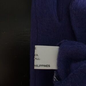 Worn a couple times with my dress coat. Great color purple with black zigzag embellishment very comfortable from a pet friendly smoke free home.