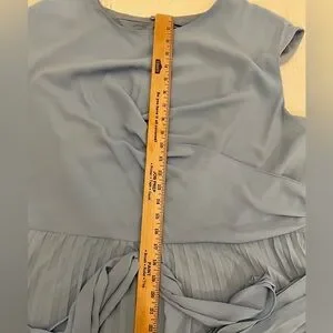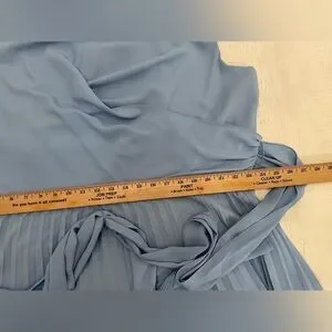 Sky Blue Pleated Faux Wrap Dress Maggie London Size 24-W Excellent pre owned condition See pics for addl measurements Near New