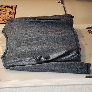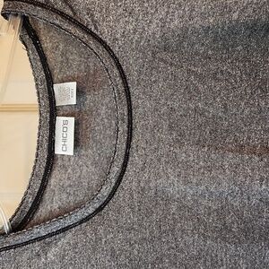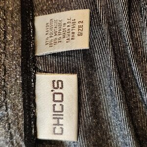 Chicos. size 2. Women's metallic black and silver long sleeve shirt. Please see last picture for material information. Please feel free to ask questions.
