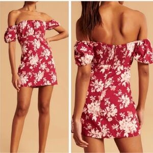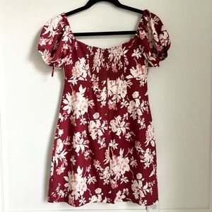 Abercrombie & Fitch Burgundy Floral Smocked Off Shoulder Mini Dress