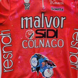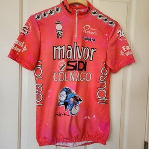 Vintage 1989 Malvor Sidi Colnago Cycling Jersey Pink Red Biking Racing Retro