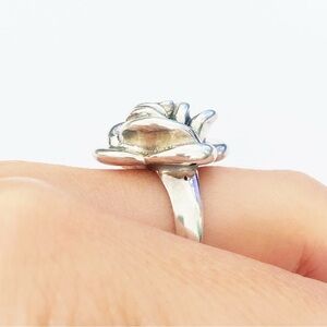 Sterling silver large rose design statement ring size 7. Large floral rose design. Marked 925 inside of band and behind the rose. Tested and confirmed as sterling silver. Beautiful ring! Size 7. Excellent preowned condition.