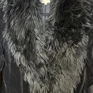 Black velvet fabric with faux fur collar