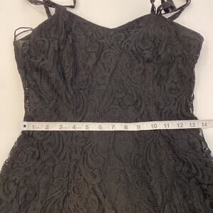 All That Jazz vintage 1990’s Y2K black lace a-line fancy mini dress. Zipper back. Lined. Double strap.