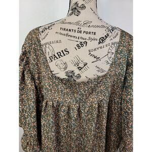 Arula Babydoll Top Sz C 3X Square Neck Green Floral Short Sleeve Ruffle Bohemian