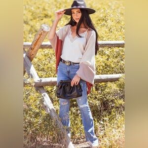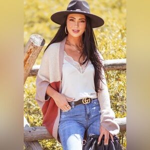 Rust Colorblock Dolman Sleeve Cocoon Cardigan one size