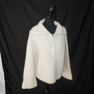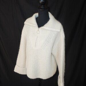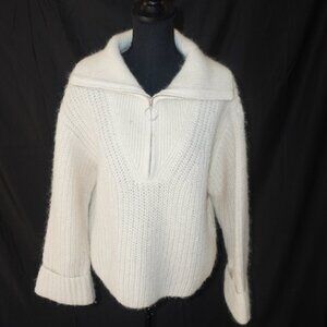H&M Zip Chunky Alpaca Wool Creme Oversized Cable Knit Funnel Collar Sweater S