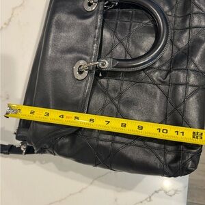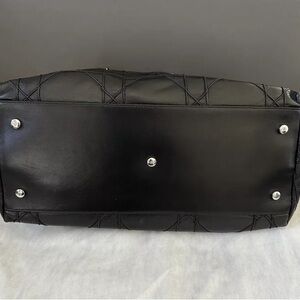 Authentic Christian Dior Granville Cannage LargHandbag Black Lambskin 2-Way Tote