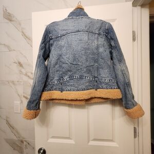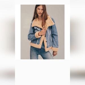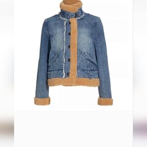 Free People Rylee Cozy Moto Sherpa Faux Fur Denim Jacket Women's new without tag