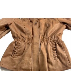 Cavalini vegan leather jacket brown full zip hooded medium