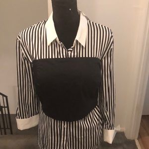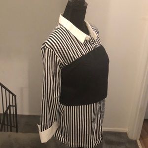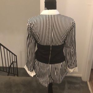 Black and white blouse with removable corset. Long sleeve. Blouse / corset can be worn separately. Corset can be worn with different top.