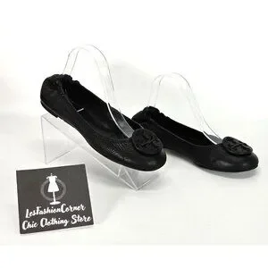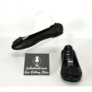 Tory Burch Women's Black Leather Ballet Flat Minnie Travel Flats Size 8