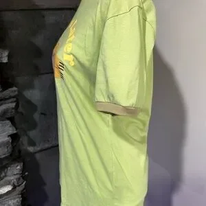 Lime green with tan neck and cuffs. Fun tee by Culturefly pit to pit 20” length 26”