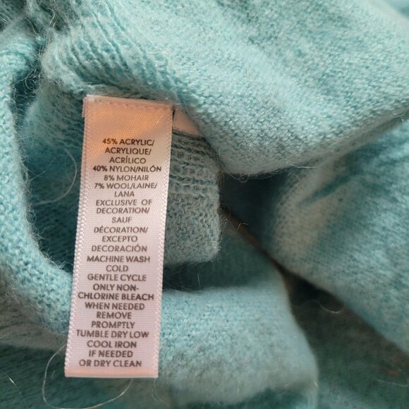 LOFT Womens SZ XSMALL Crew Neck Sweater Light Blue Letter Graphic Embroidery. Wool Mohair Blend. 23" long. 19 " armpit to armpit. Excellent condition.
