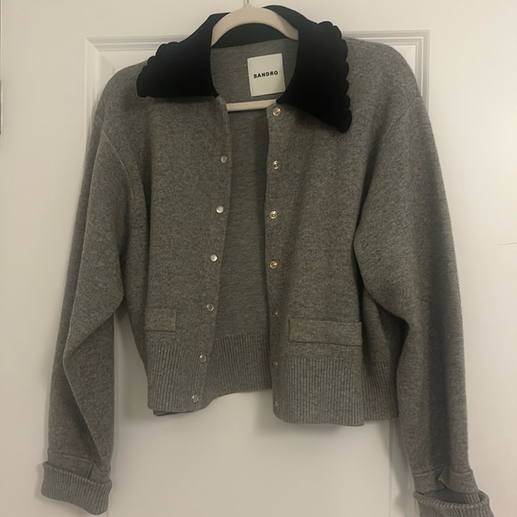 Cropped shirt-style coatigan with a contrasting velvet collar, long sleeves and a button fastening.