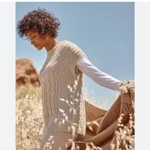 J. Jill Cotton Blend Cable Knit Sweater Vest Oatmeal Large