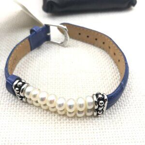 Early 2000's Original QVC like-new condition genuine Honora Double Row Freshwater Pearl Royal Blue Genuine Leather Buckle Bracelet.