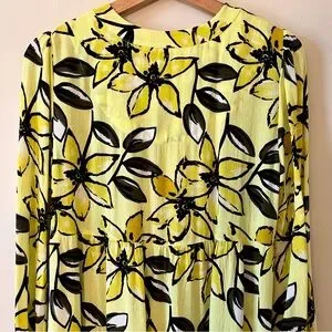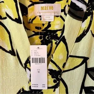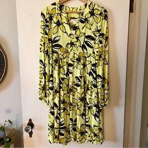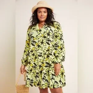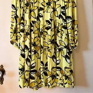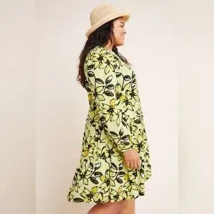 Anthro Maeve Yellow Floral Amber Tiered Tunic Dress, Size M