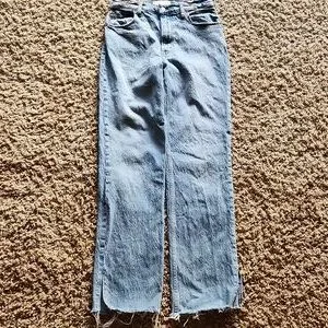 Abercrombie & Fitch light wash The 90's straight ultra high rise jeans. has slit at ankles so can go over boots if needed