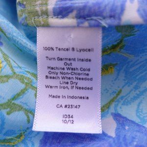 Talbots Shirt Women Size Small Blue Floral Top Blouse Sequin Boho Allover Tencel