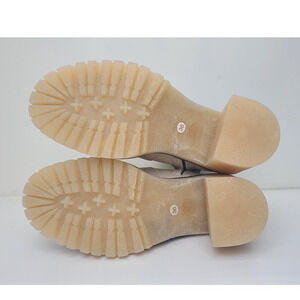 Features: Side zip closure; Cushioned insole; Chunky block heel; Lugged gum sole; Hidden elastic gore insets at the sides